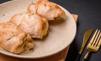 - Robove testa zavihajte navznoter in jih premažite z rumenjakom.
